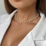 Чокер - це коротке намисто, яке щільно прилягає до шиї і має регульовану довжину. Дана модель кольє виконана з натуральних перлів та кольорових фіанітів. Тонка витончена прикраса на шию користується великою популярністю. Перлинне намисто виконане вручну. Довжина чокера 36+ 6 см подовжувач см. Застібка - латунь із позолотою 18K.