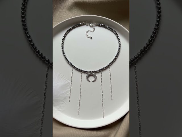 Der Choker aus natürlichen Hämatit mit einem Mondanhänger ist ein Schmuckstück, das Minimalismus, mystische Symbolik und zeitgenössische Ästhetik vereint. Der silberne Glanz des Hämatits verleiht dem Look Tiefe und zurückhaltenden Luxus, während der Mond eine Prise Geheimnis und Individualität hinzufügt.