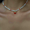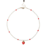Чокер - це коротке намисто, яке щільно прилягає до шиї і має регульовану довжину. Дана модель чокера виготовлена з натурального каменю перламутр. Прикраса на шию з натурального каміння користується великою популярністю. Чокер – кольє виконане вручну. Довжина чокера 36 см + подовжувач 6 см. Підвіска - підвіска полуниця.