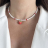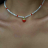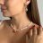 Кольє-чокер з натурального перламутру, розмір намистин 2-3 мм, основа - ювелірний трос, довжина чокера 36 см + 6 см подовжувач. Підвіска- полуниця