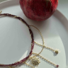 Двойной дизайн сочетает две текстуры: нить из граната и утончённые металлические цепочки, создавая гармоничный баланс классики и современного шика.