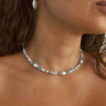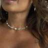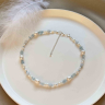 This elegant choker necklace is crafted from natural pearls and aquamarine. A sophisticated neckpiece that is highly popular. The pearl necklace is handmade with a length of 36 cm + 6 cm extender.