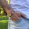 Стильні чоловічі прикраси з каміння чорного і білого натурального агату мають ряд магічних властивостей, таких як: захист від пристріту, дар ясновидіння, оберіг від вампірів, приводять до гармонії, благотворно впливають на здоров'я, надають упевненість у собі, захищають від небезпеки та негативної енергетики. Такі вироби набувають і як модний аксесуар на руку, що підкреслює стиль та індивідуальність. Браслет на гумці з натурального каміння є чудовим подарунком для коханого.Якщо ви не знаєте, що подарувати на свято татові, хлопцеві чи чоловікові – стильна чоловіча біжутерія – відмінний варіант. Цей браслет складається з маленьких каменів, діаметром 6 мм, можна купувати відразу кілька і носити одночасно. Браслет ручної роботи. Живи зі смаком - LeBijou!