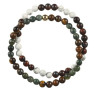 Парні браслети з намистин натурального каміння чудово виглядають на руці, якщо їх одягати відразу кілька. Парні браслети підкреслюють стиль та індивідуальність, тому вони стали дуже популярними. Одягнувши таку модну прикрасу, ви не залишитеся непоміченим у колі друзів чи робочому колективі. Модні браслети з каменю знаходяться на піку стилю та моди. Цей сет виконаний з натурального каміння кахолонга, бичачого ока, яшми.