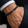 Чоловічі чорні браслети дуже стильно виглядають і приносять в образ модні нотки сучасності. Аксесуари чорного кольору завжди універсальні і залишаються на піку популярності як у чоловіків, так і жінок. Такі вироби часто виконані з лави, агату. та інших чорних натуральних каменів.