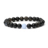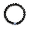Браслет з натурального каміння чорний агат і аквамарин. Діаметр намистин - 8 мм. Основа – подвійна міцна гумка.