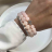 Набір браслетів з натурального каміння рожевого кварцу, фіанітів, гематиту. Рожевий колір з сріблом. Діаметр намистин - 10, 8, 4 мм. Основа – подвійна міцна гумка. (4524+4513+4983)