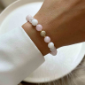 Прикраси з натурального рожевого кварцу користуються великою популярністю серед дівчат і жінок. Кварц багато дивиться на руці і зачаровує жіночі серця. Рожевий кварц поєднується з будь-якими іншими прикрасами та біжутерією, золотом, годинником та аксесуарами. Вироби з натурального каміння мають міцну основу - подвійну гумку, яка не намокає і не рветься, забезпечуючи тривалий термін служби прикраси.
