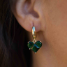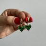 Handcrafted transformer earrings. Hardware - brass with 24K gold plating. Color: green. Pendant - green heart, 24K gold plating on brass.