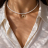 Кольє-чокер з натуральних перлів, розмір намистин 3-4 мм (2 калібр), основа - ювелірний трос, довжина чокера 36 см + 6 см подовжувач. Підвіска - золота лунниця з фіанітами.