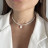 Кольє-чокер з натуральних перлів, розмір намистин 4-6 мм, основа - ювелірний трос, довжина чокера 38 см + 5 см подовжувач.