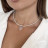 Кольє-чокер з натуральних перлів, розмір намистин 3-4 мм, основа - ювелірний трос, довжина чокера 36 см + 6 см подовжувач. Підвіска - серце із каменю