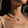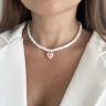 Ein Choker ist eine kurze Halskette, die eng am Hals anliegt und eine verstellbare Länge hat. Dieses Modell des Halsbandes ist aus echtem Perlmutt gefertigt. Feiner, zarter Schmuck für den Hals erfreut sich großer Beliebtheit. Die Halskette ist handgefertigt. Die Länge des Chokers beträgt 38 cm + 6 cm. Anhänger - Herz. Luxuriöse Hardware.