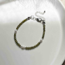 Zarter Armreif mit Verlängerungskette aus grünen Zirkonia-Steinen.