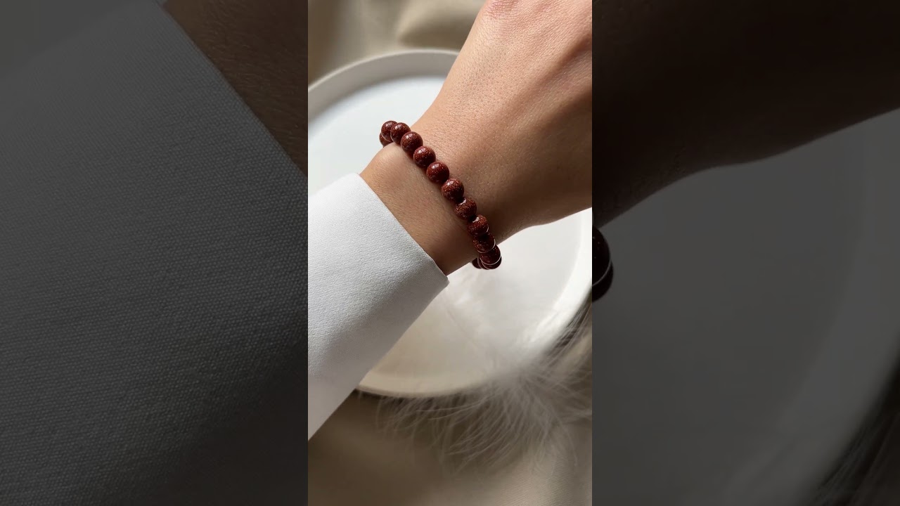 Браслет из натурального авантюрин. Цвет песочный с золотом. Диаметр камней 8 мм, основа - двойная прочная резинка.