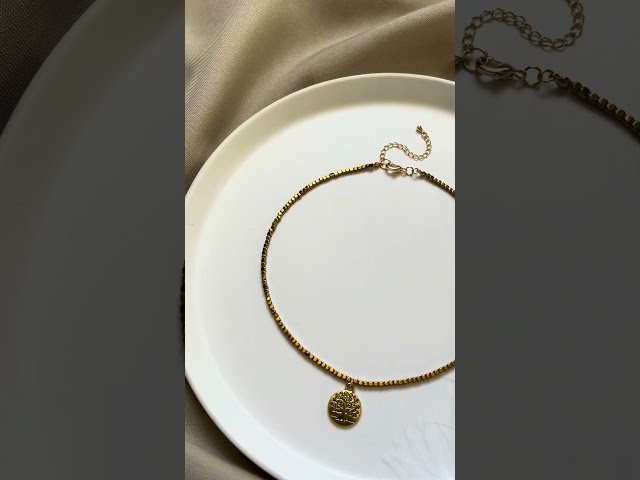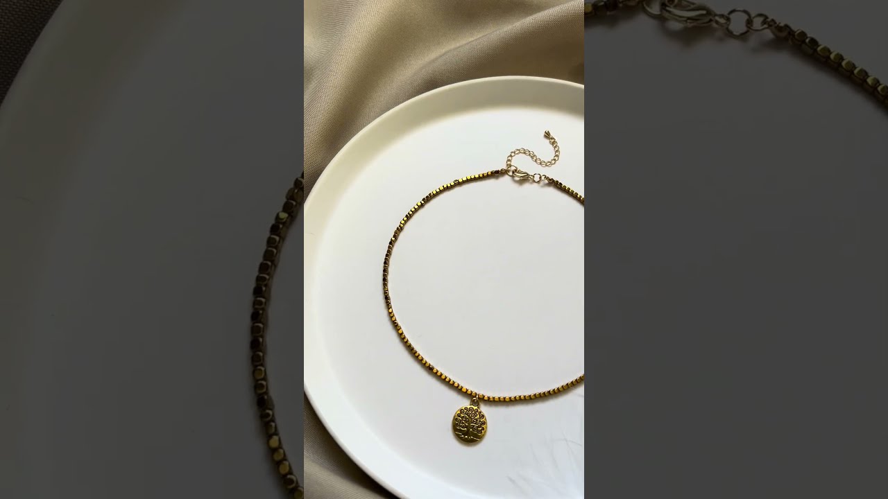 Украшение выполнено в виде тонкого золотого чокера, который мягко облегает шею и подчёркивает изящество линии ключиц. Подвеска «Дерево жизни» добавляет образу особой энергетики и притягательности, а золотой блеск делает аксессуар универсальным — он одинаково красиво смотрится как с повседневной одеждой, так и с вечерними нарядами.
