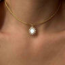 Sonnenanhänger, Luxusklasse-Hardware, 24 Karat vergoldet auf Messing, Perlmutt.